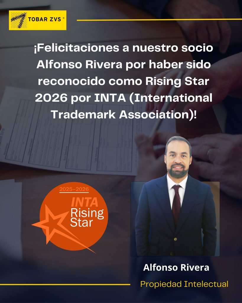 TOBAR ZVS se enorgullece en compartir que nuestro socio y director del área de Propiedad Intelectual, Alfonso Rivera Canales, ha sido reconocido como INTA Rising Star 2026 por la International Trademark Association (INTA).